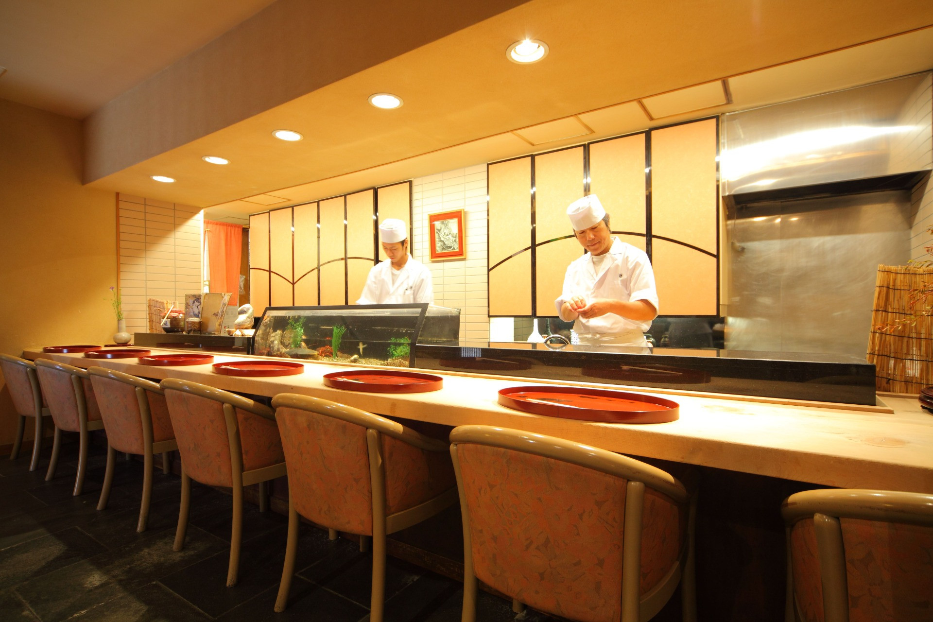 天然の魚介を仕入れたての鮮度を保ったまま調理し、一番おいしい状態でお客様にお召し上がりいただけるよう努めております。京懐石と寿司を組み合わせたコース料理の他、旬のお造りの盛り合わせや焼き物など、シーンやお好みに合わせてお選びいただける様々な一品料理がございます。特別なお祝いのお席に最適な彩り豊かなお料理の数々は、素材の持ち味を最大限に引き立てられるよう、熟練の職人が素材選びから調理法にまでこだわって、心を込めて一品一品お作りしております。